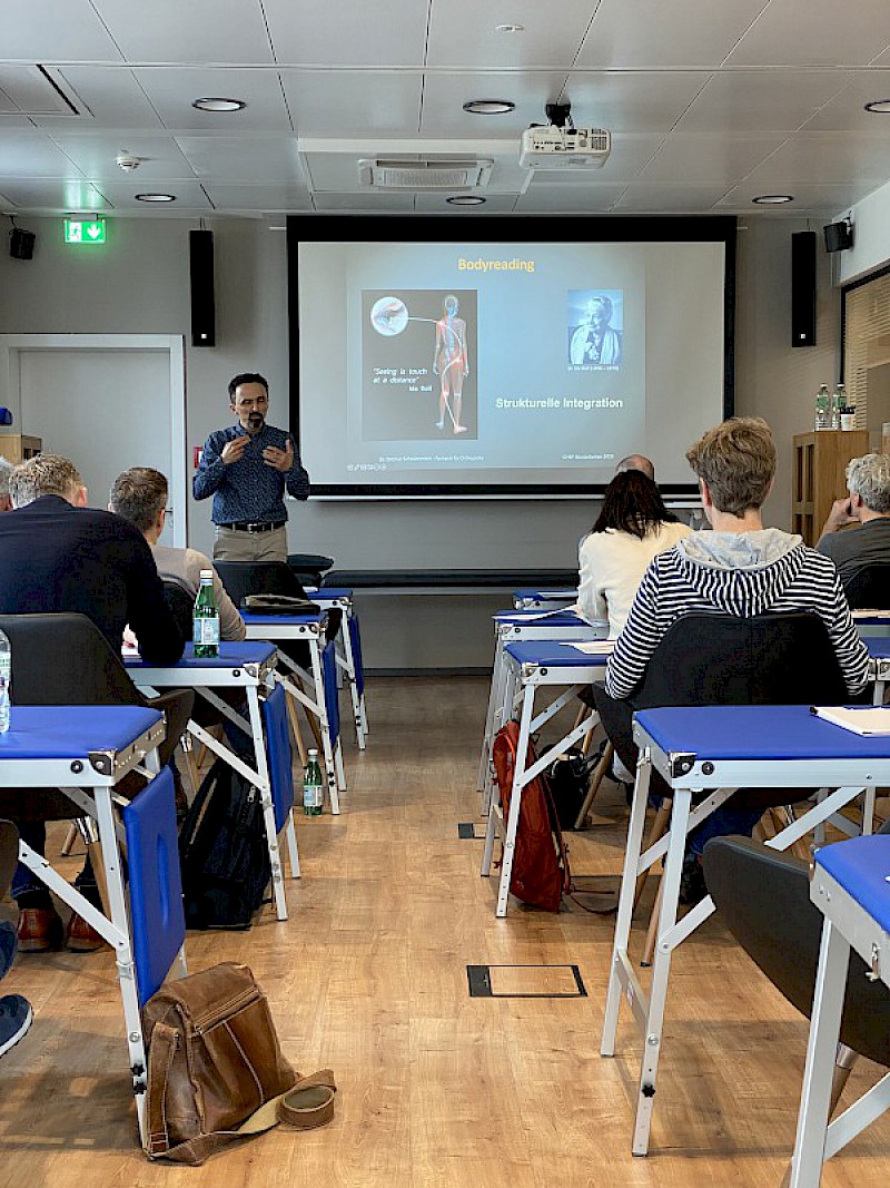 Weiterhin behandelt werden im Kurs die Wechselbeziehungen zwischen den sensomotorischen Schlüsselregionen Fuß, Auge, Kauapparat und Gleichgewicht dargestellt. Neben sensomotorischer Einlagentherapie steht die ganzheitliche Betrachtung des Bewegungsapparates im Vordergrund.